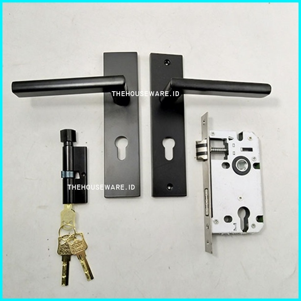 Handle Kunci Pintu Rumah Set Ukuran Medium Tanggung Black Hitam Minimalis
