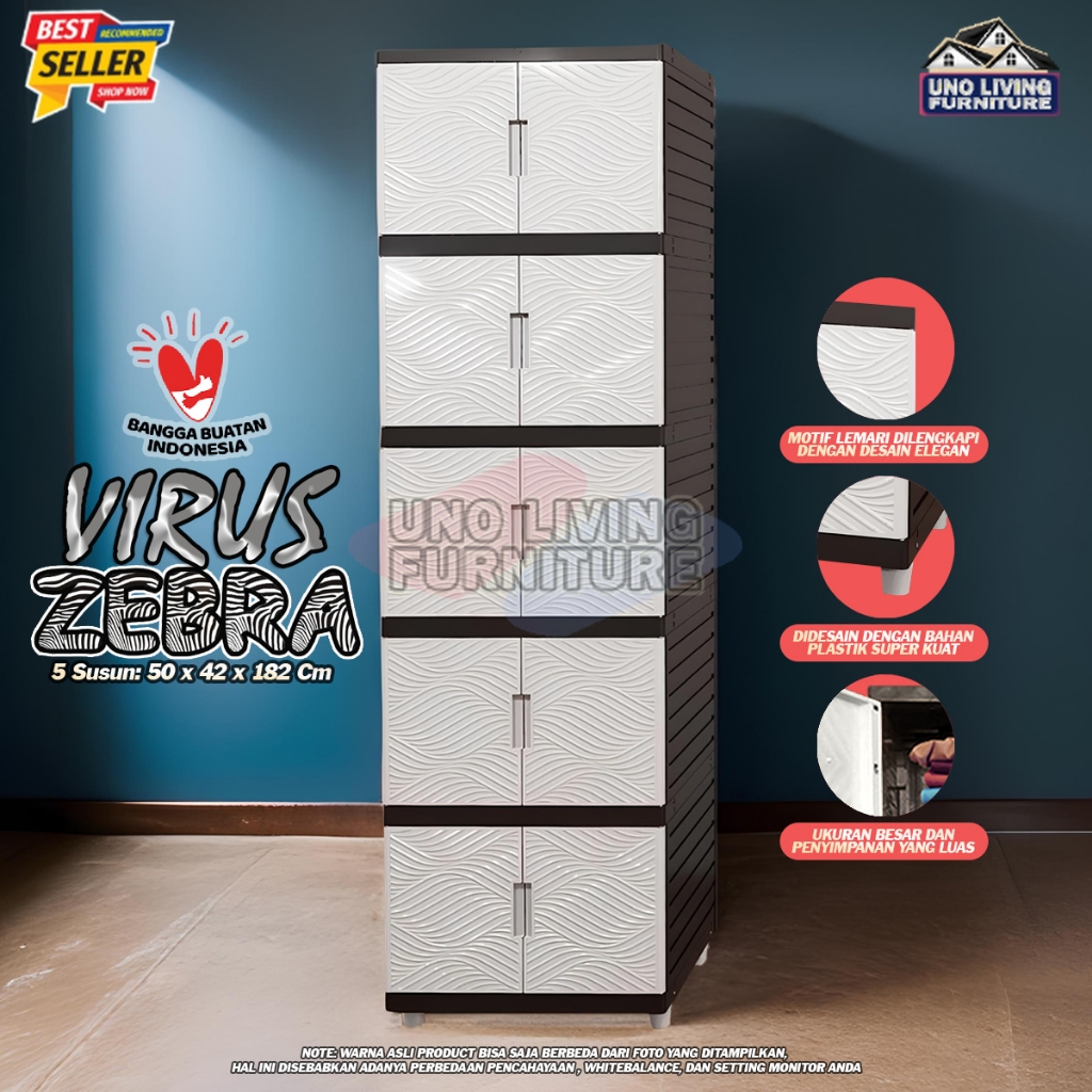 LEMARI PAKAIAN KINGDOM VIRUS 5 SUSUN LEMARI PINTU KABINET LEMARI PLASTIK MINIMALIS - FULL CREAM