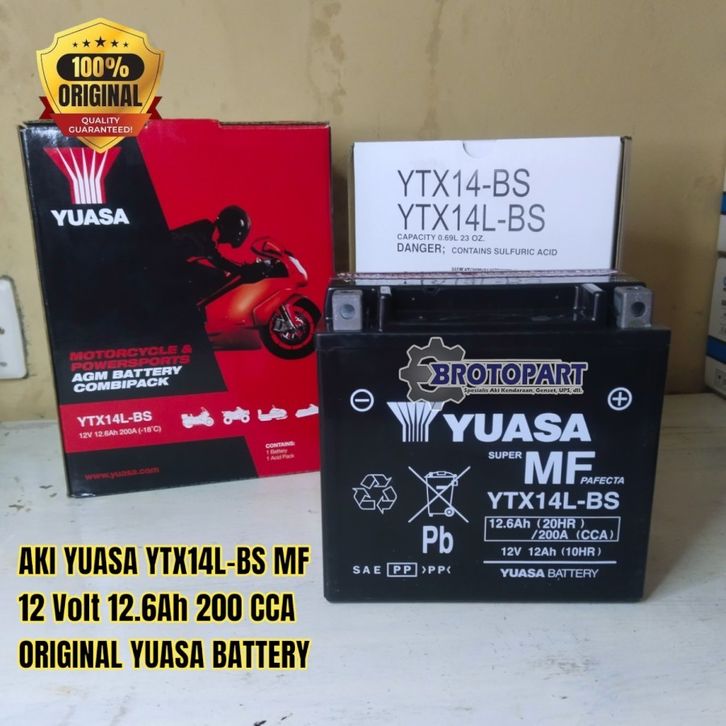 AKI MOTOR APRILIA SCARABEO 500, BENELI 502C YUASA YTX14L-BS MF Aki kering 12V 12.6Ah ORIGINAL
