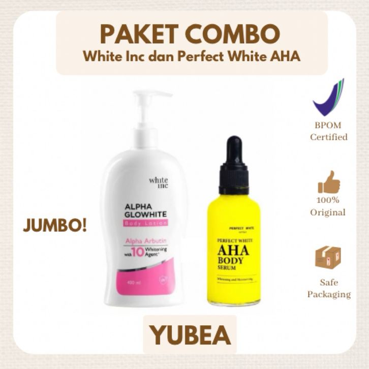 [2PCS] PAKET COMBO JUMBO WHITE INC ALPHA GLOW WHITE BODY LOTION HYDRATING WHITENING DAN MOISTURIZING 400 ML + PERFECT W