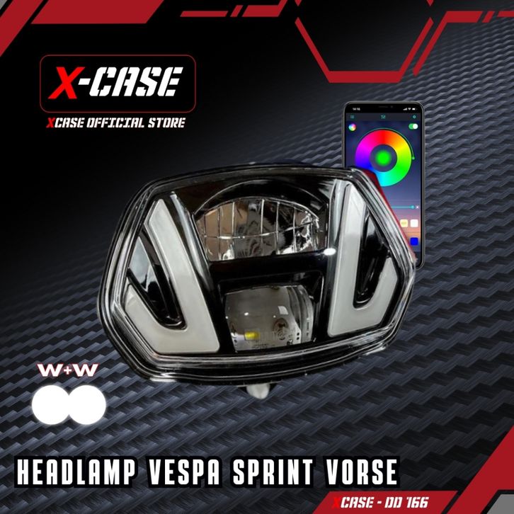 X-Case Lampu Depan Headlamp Vespa Sprint Model Vorse Senja Rgb Aps 200 Mode Sein Running Sein DD166