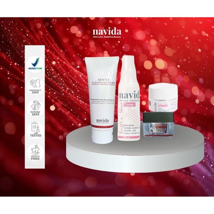 serum wajah NAVIDA Bright N’ Shine BPOM Paket Skincare Brightening & Glowing | Face Wash, Toner, Serum, Cream