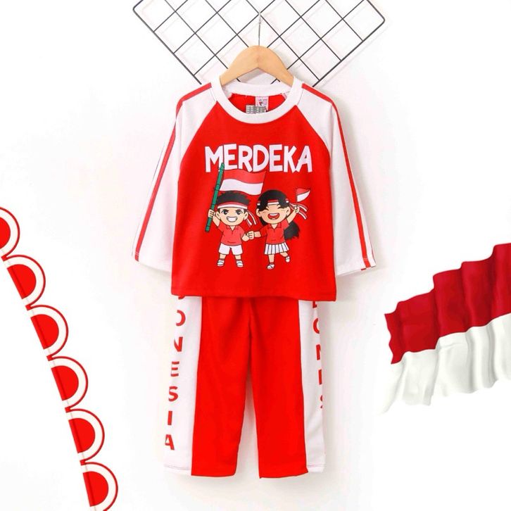 Setelan Baju Anak Unisex Kaos Merah Putih Kemerdekaan HUT RI Dirgahayu Setelan Anak Laki Laki Perempuan 17 Agustus Murah