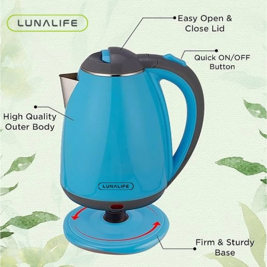 LUNALIFE Teko listrik LK502 Kapasitas 2L Pemanas Air 3 Warna Elektrik Kettle 500 Watt Daya Rendah