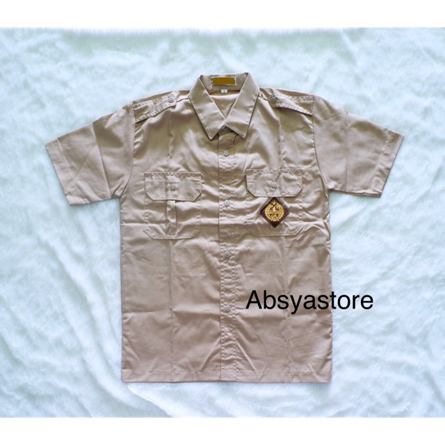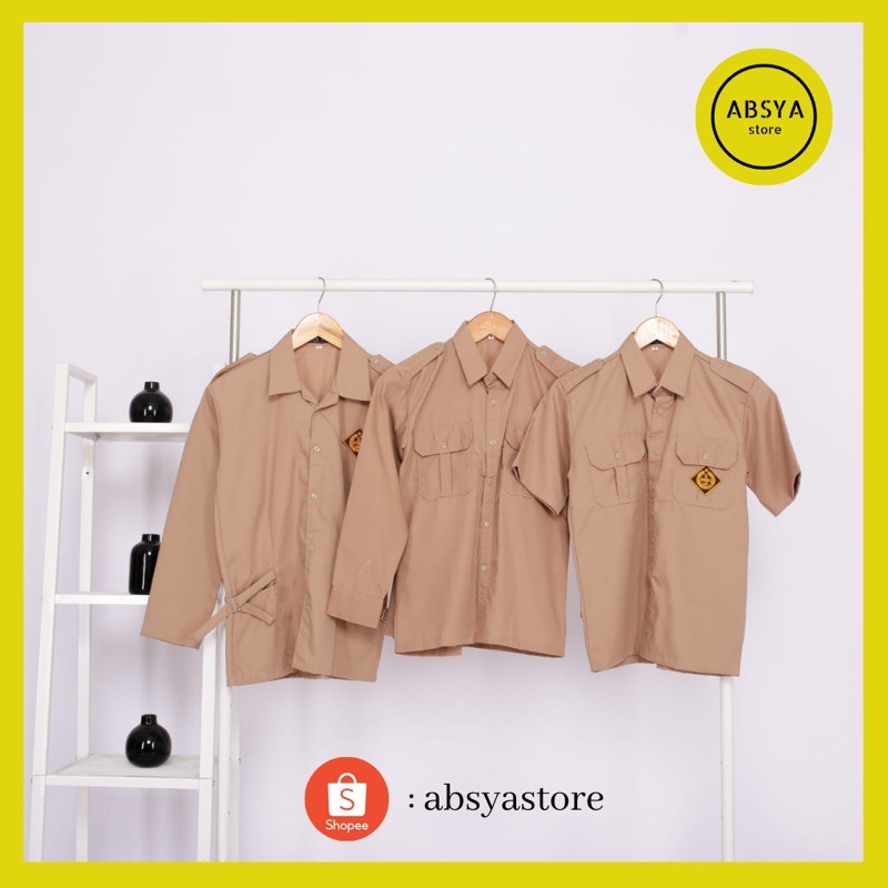 BAJU PRAMUKA PENDEK LAKI-LAKI / pramuka panjang pria seragam sekolah bahan OXFORD COKLAT SUSU