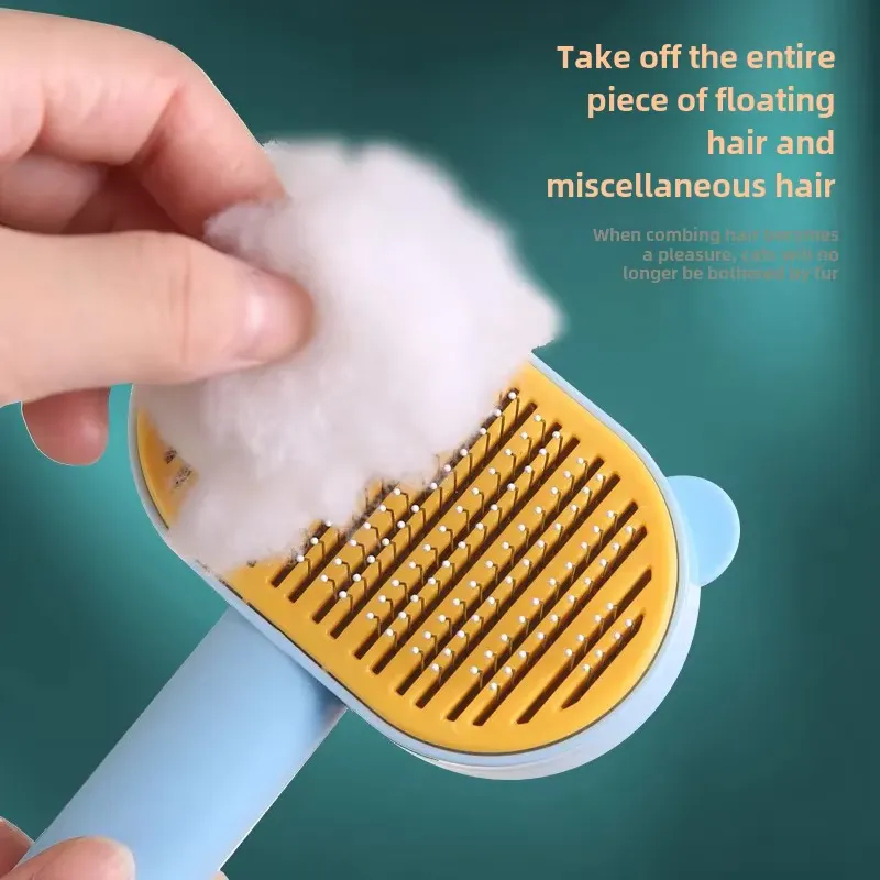 Sisir Grooming hewan bentuk kepala kucing dengan tombol pembersih SS049 untuk anjing kucing kelinci