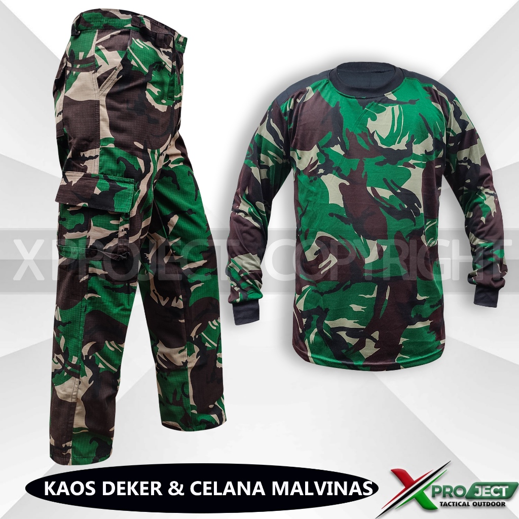 Satu Set Setelan Baju Kaos Celana Panjang Loreng Malvinas Pria Cargo