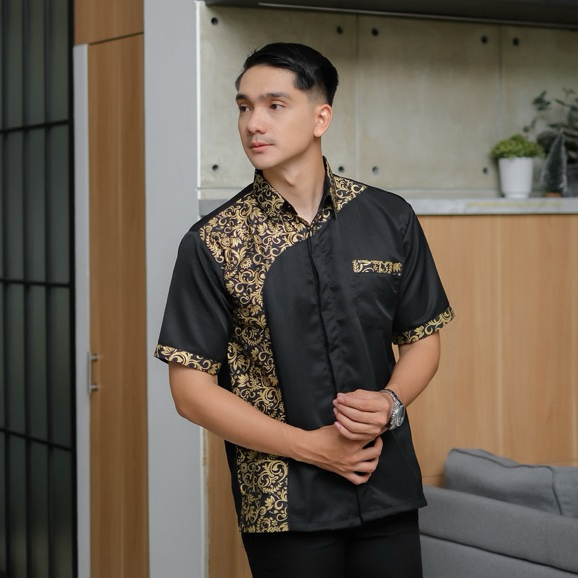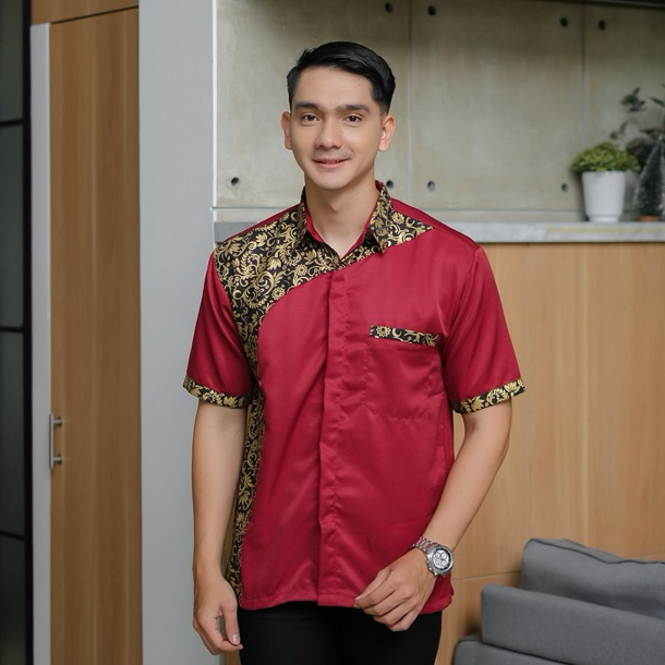Kemeja Batik Pria Lengan Pendek Seragam Kerja Bahan katun Toyobo