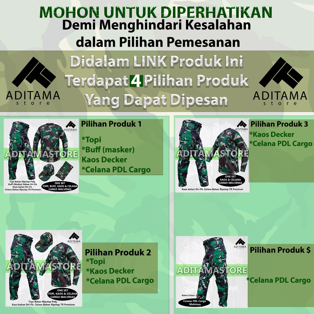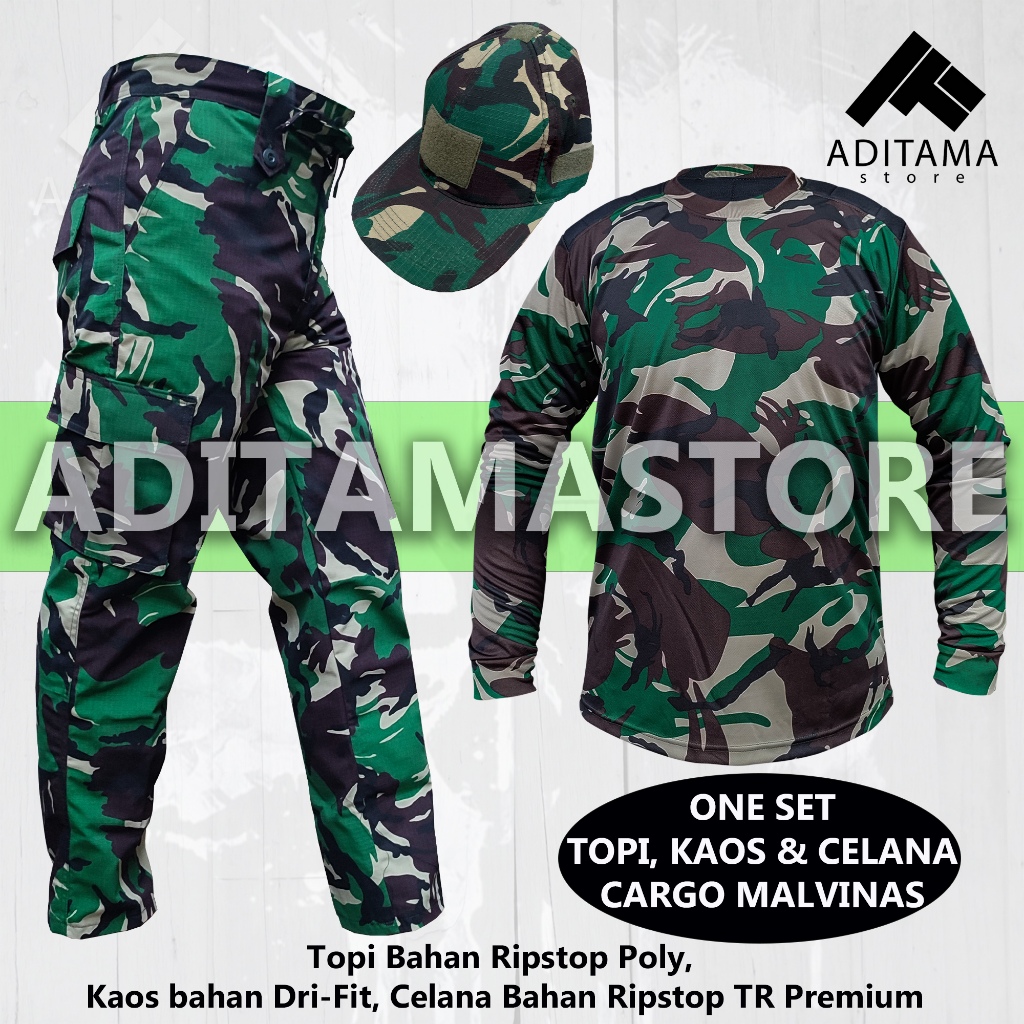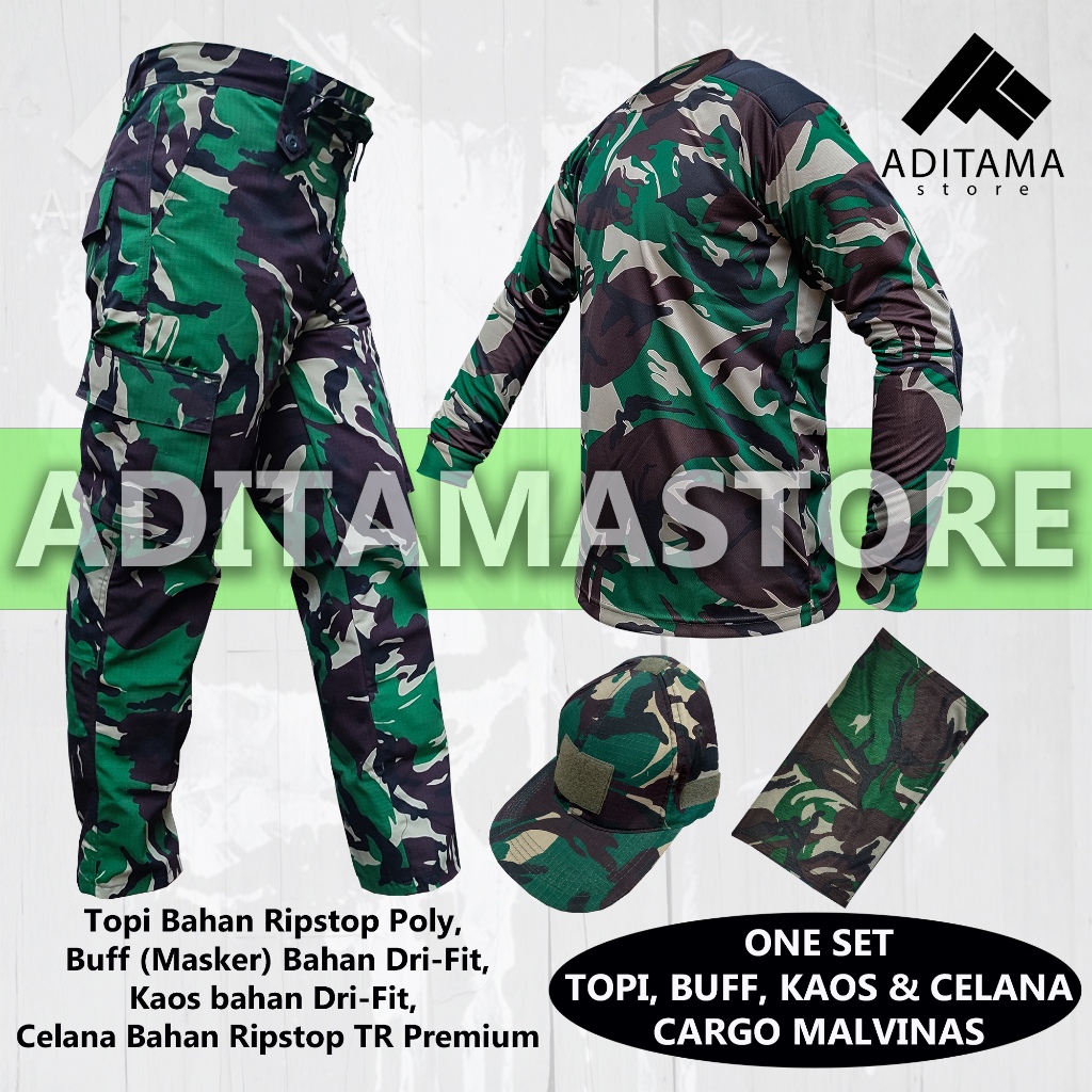 Satu Set Setelan Kaos Baju Topi Buff Celana Pria PDL Loreng Malvinas Army Decker Panjang