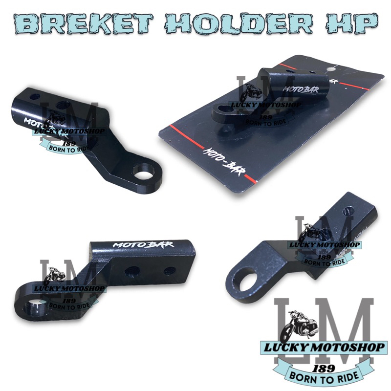 Braket Spion Holder HP Moto-Bar Dudukan Lampu Tembak Spion Universal Kokoh Allumunium Alloy