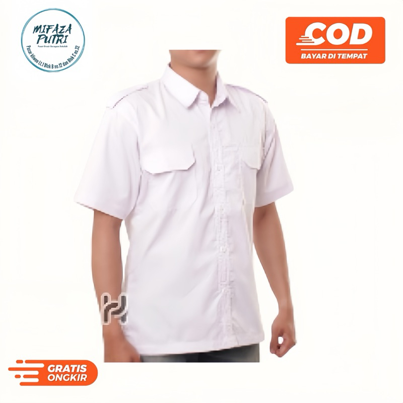 Kemeja Seragam Putih Pilot Saku Dua lengan Pendek Pangkat Jokowi PNS PDH