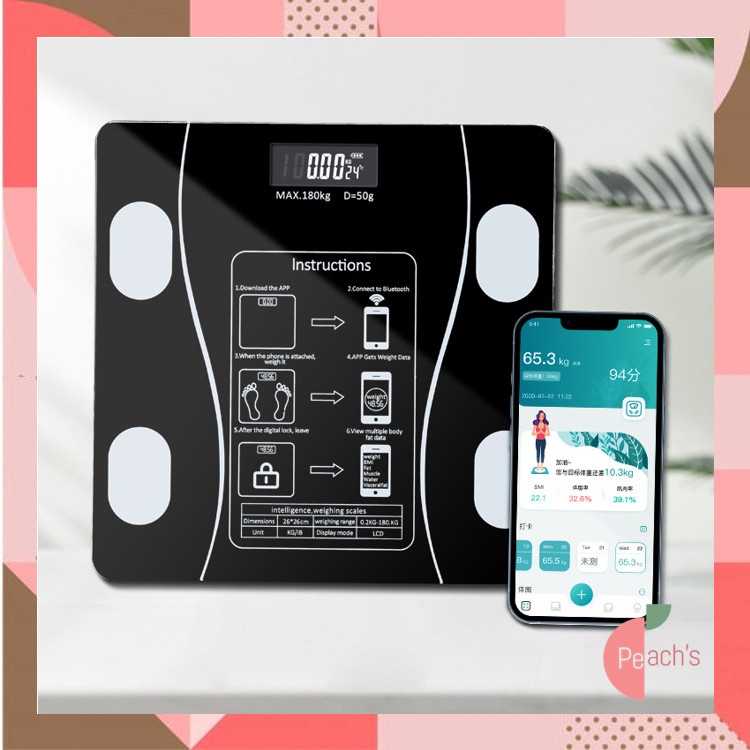PEACHs - 6152 Bluetooth Digital Body Scale / Pemantauan Kesehatan yang Terhubung / Timbangan Badan Tempered Glass