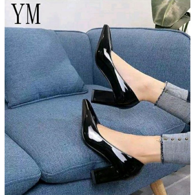 sepatu pantopel wanita sepatu kerja sepatu kantor glosy tinggi hak 7cm ZR T 02