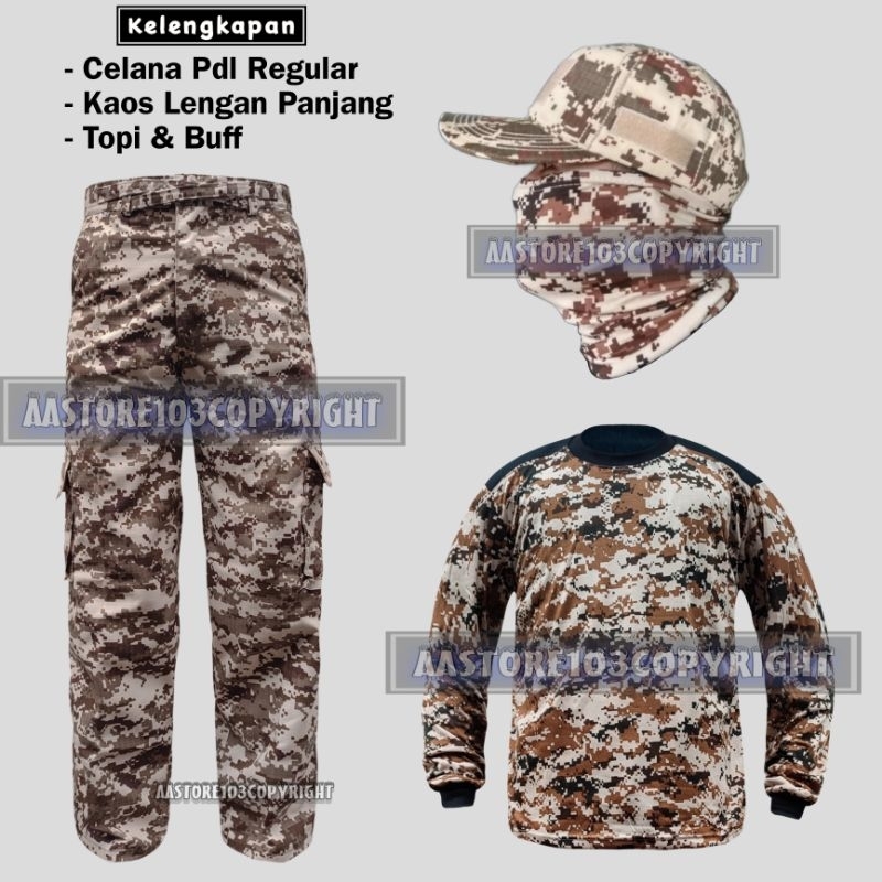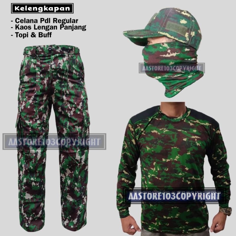 Setelan Kaos Loreng Army - Seragam Loreng Malvinas Lengan panjang - Kaos Full Loreng