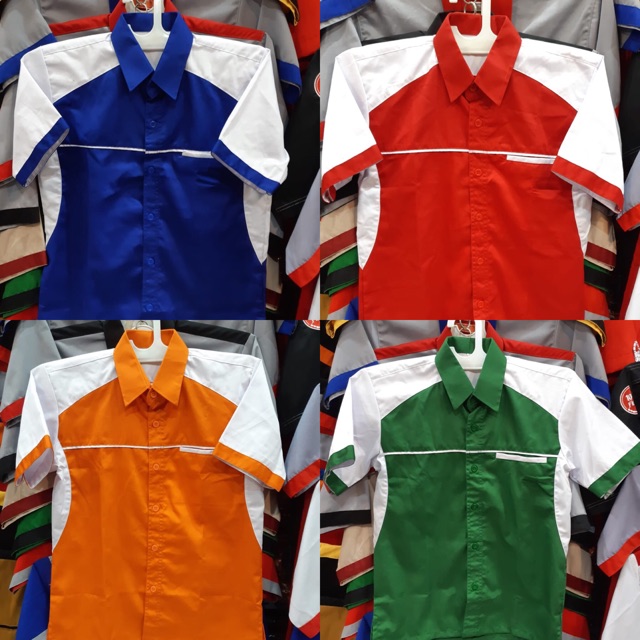Kemeja kerja pria drill biru putih seragam kerja drill merah putih baju kerja drill bisa Bordil