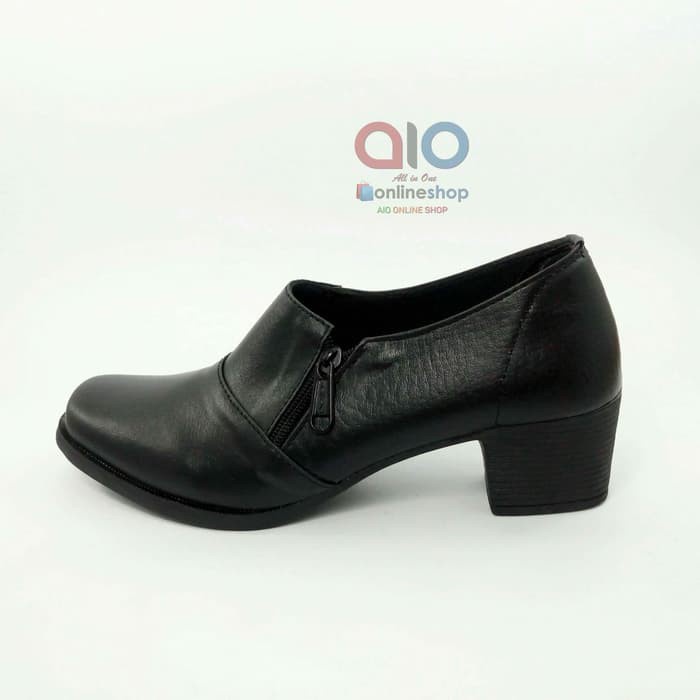 Sepatu Pantofel Wanita Resleting Hak 5 Cm Formal Zipper Hitam Polwan Kowad Dishub AW14