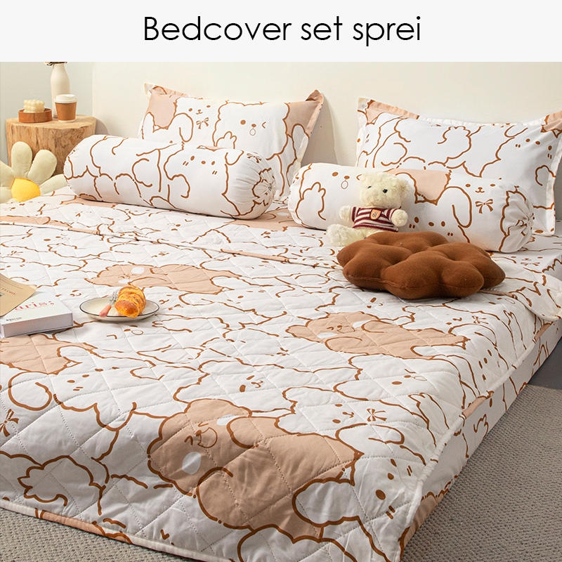 Bedcover versi tipis+ 1 Sprei size 120/160/180X200CM + 1 Sarung Bantal+ 1 Sarung Guling Tinggi 25 CM Bahan Polyeste