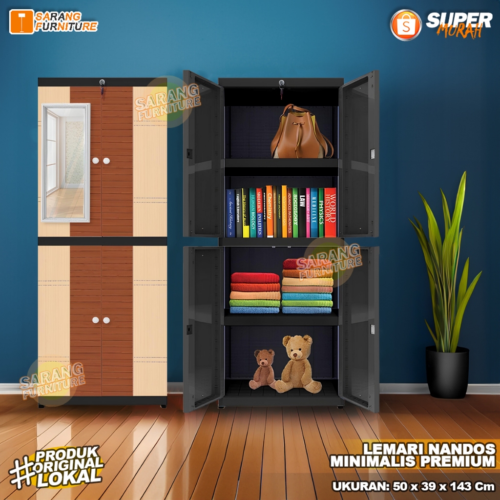 Lemari Pakaian Minimlis Naiba Nandos FIT Long Door Lemari Minimalis Pakaian dengan Cermin