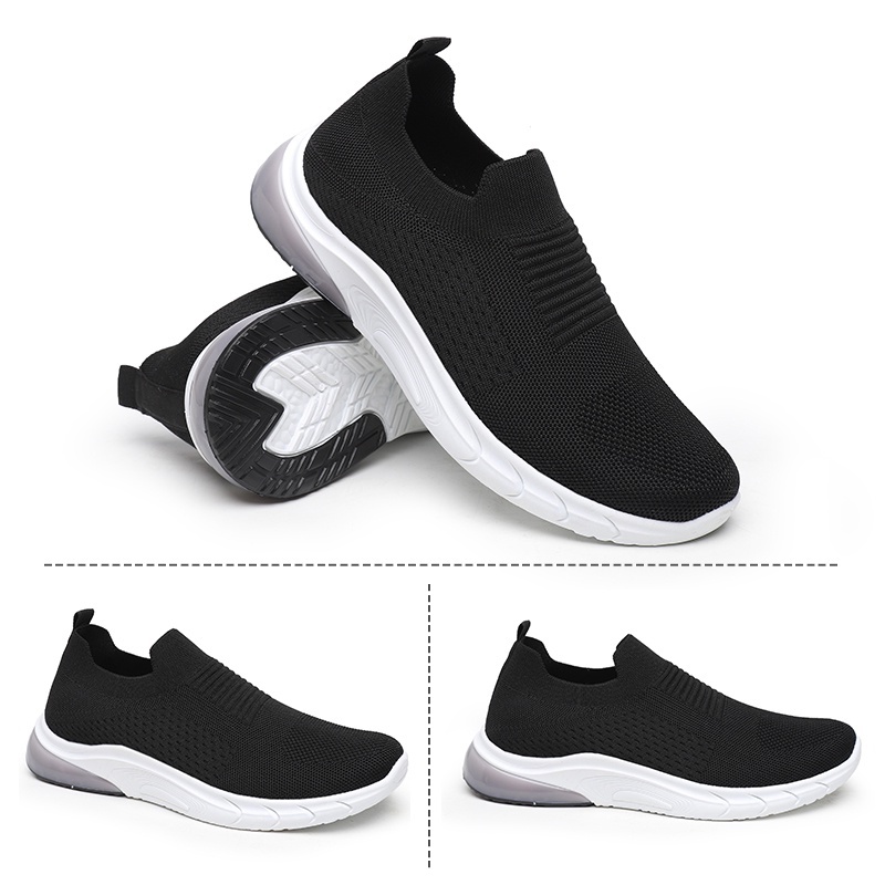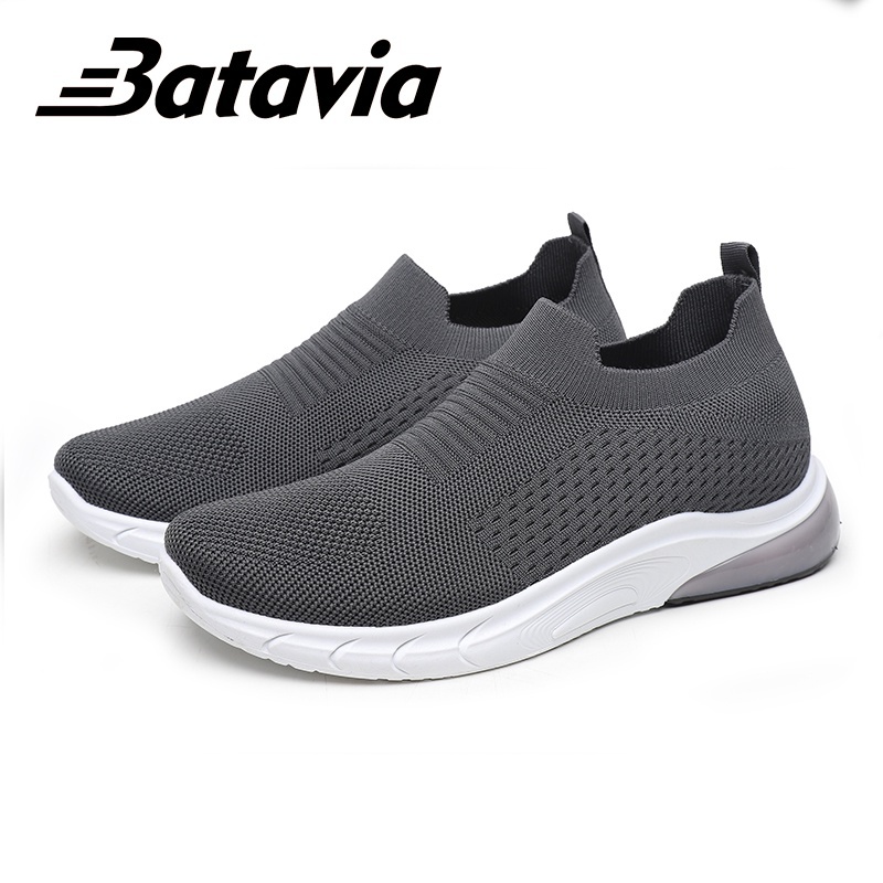 Batavia GROSIR sepatu kanvas pria rajut sepatu pria sepatu tanpa tali hitam sepatu pria B09
