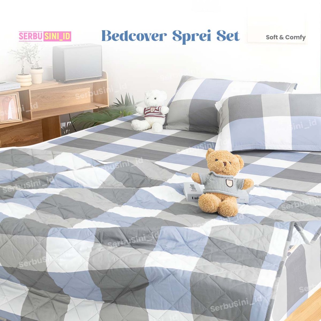 SERBU SINI Set Sprei Bedcover Sprei Set Selimut Motif Kotak-Kotak Ukuran 120CM 160CM 180CM x 200CM