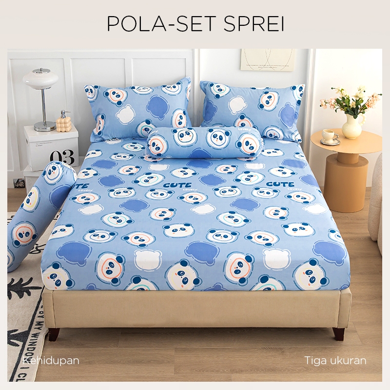 Sprei Set Sarung Bantal Sarung Guling 120/160/180x200CM Bahan Microtex
