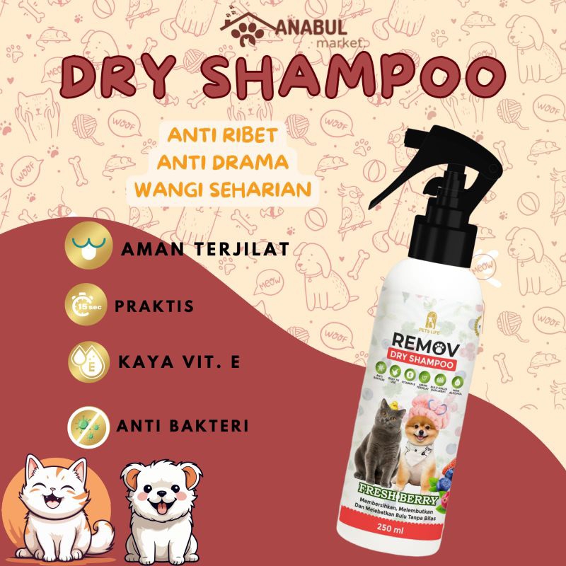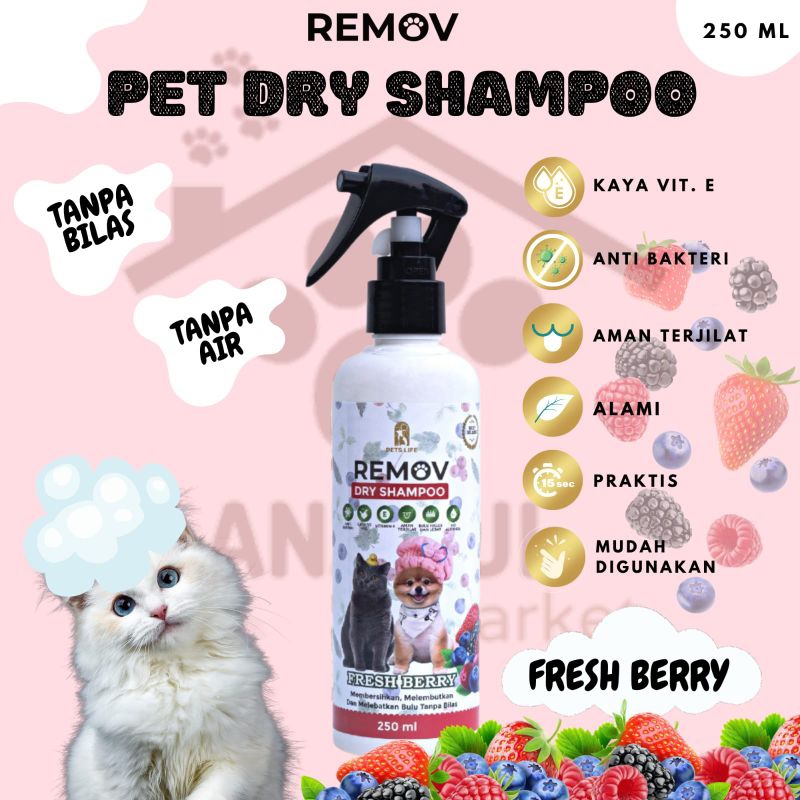 Pet Dry Shampoo Remov 250 ml Viral Shampo Kucing Anjing Kelinci Tanpa Bilas Wangi Fresh Berry