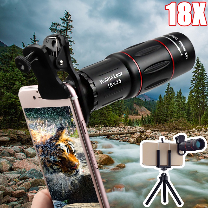 Lensa ponsel + makro, 18x Lensa +Klip, 18x Lensa +tripod, 18x Braket Genggam
