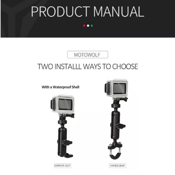 Breket Gopro Action Cam Holder Kamera Motor Camera 360 Motowolf Spion