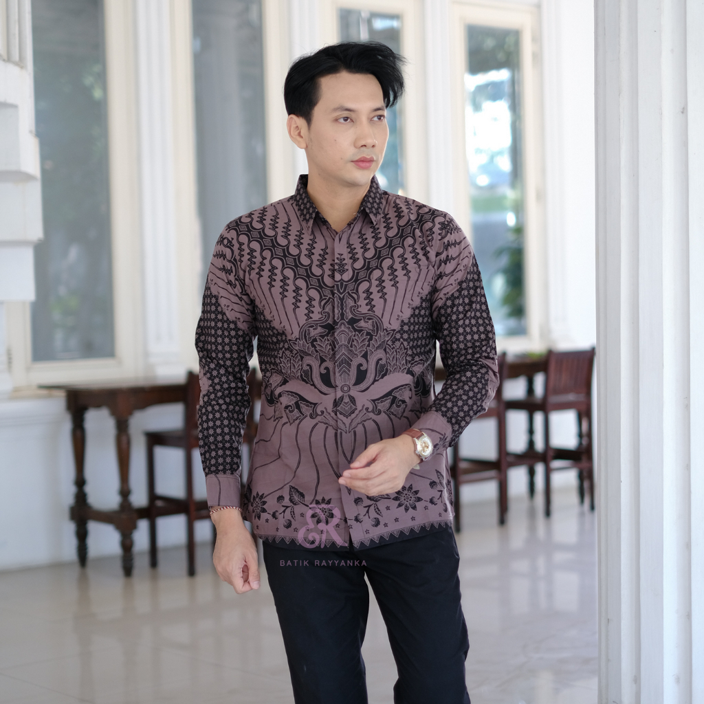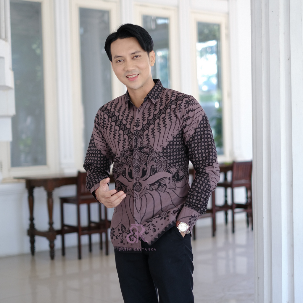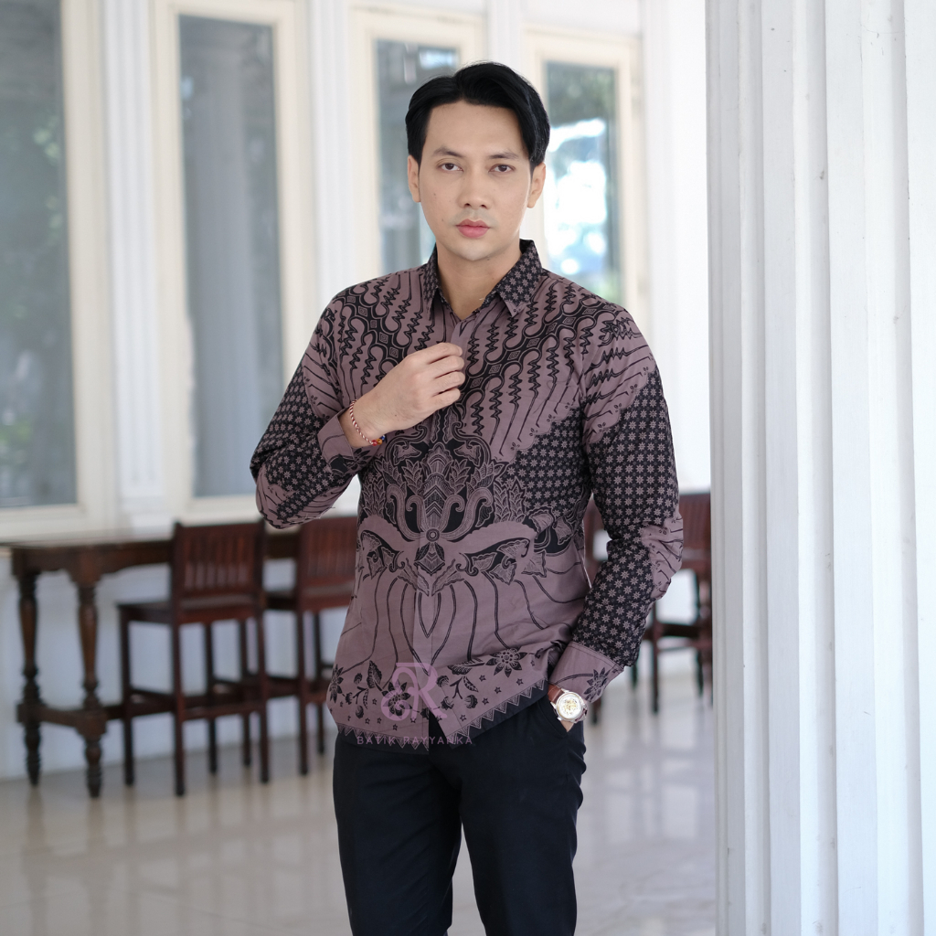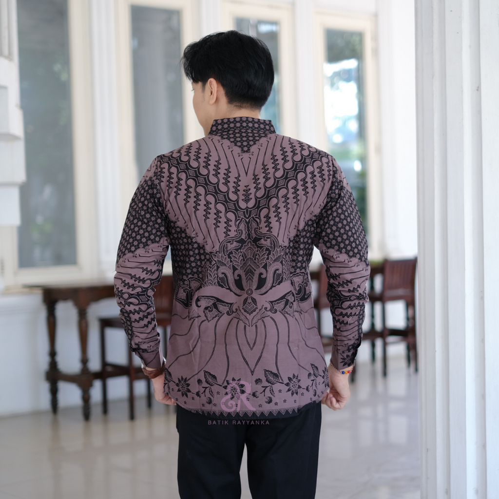 Batik Rayyanka Motif Paranggupito Kemeja Batik Lengan Panjang Warna Mauve Model Slimfit Seragam Terbaru