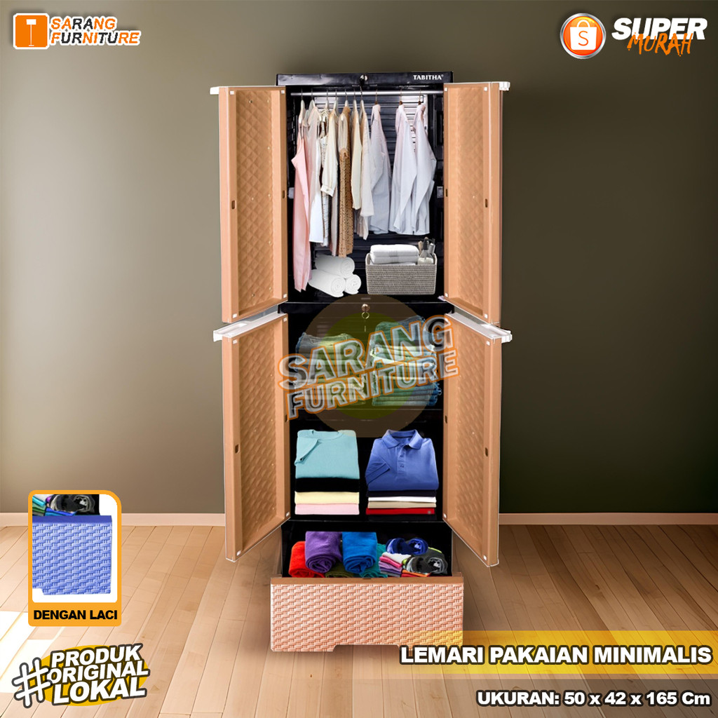 Tabitha LS2PL - Lemari Pakaian Plastik Gantung dengan Laci Lemari Pintu Rak Serbaguna dan Cermin