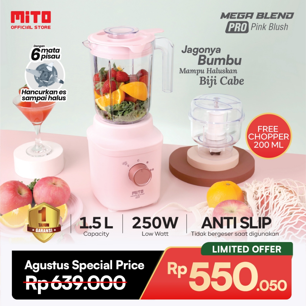 MITO MEGA BLEND PRO BL300 - 1,5L Jar 2 Tingkat Kecepatan + Pulse + 6 Mata Pisau dengan Ice Crusher
