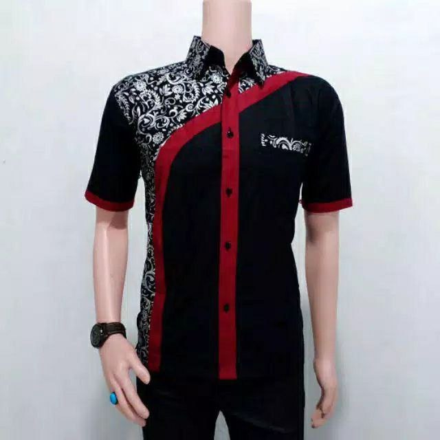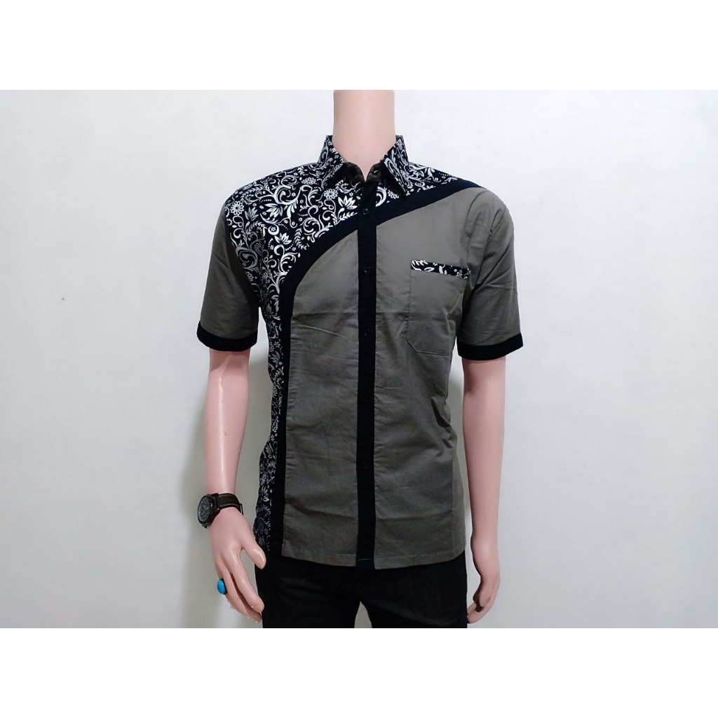 Kemeja Kombinasi Polos Batik Pria – Toyobo Adem – Seragam Kantor / Lapangan – Size M–XXL