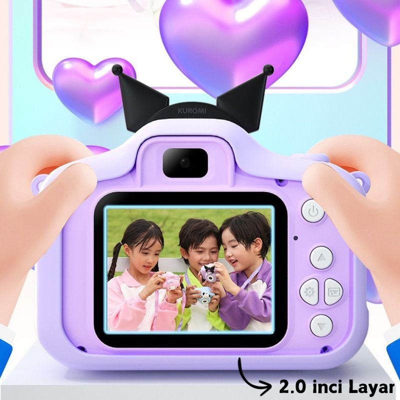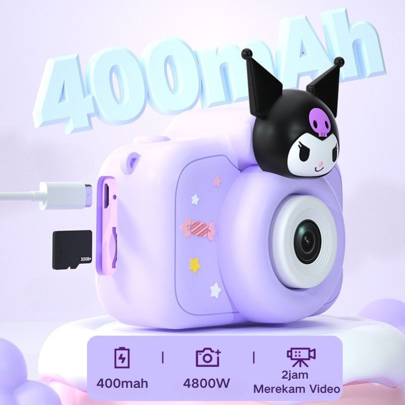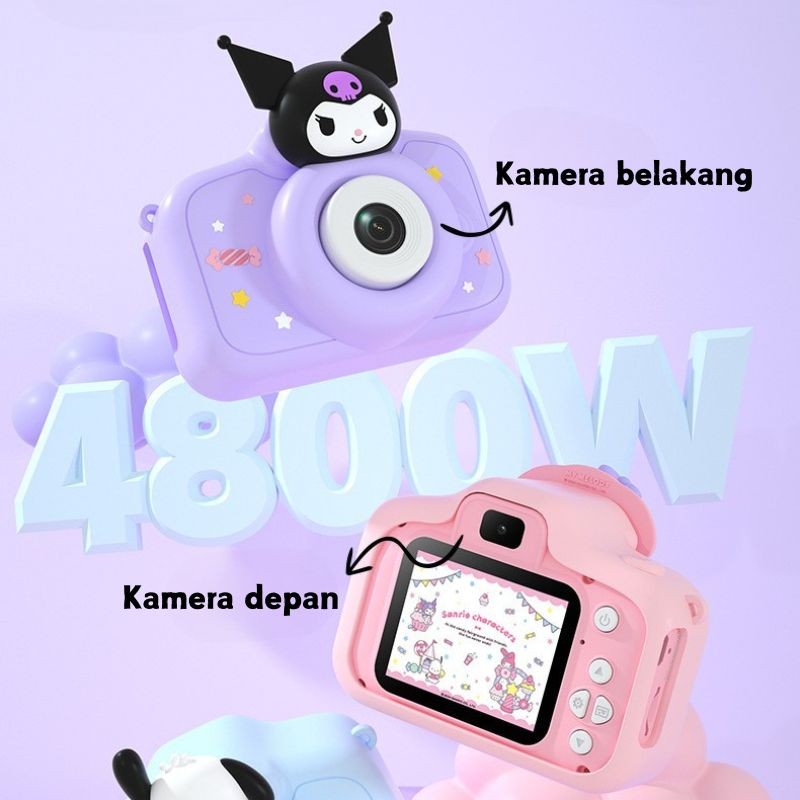 Sanrio Kuromi Kamera Anak 4800W HD Dual Camera Perekam Video Game Bawaan Multifungsi Mainan Kamera Hadiah Anak pr