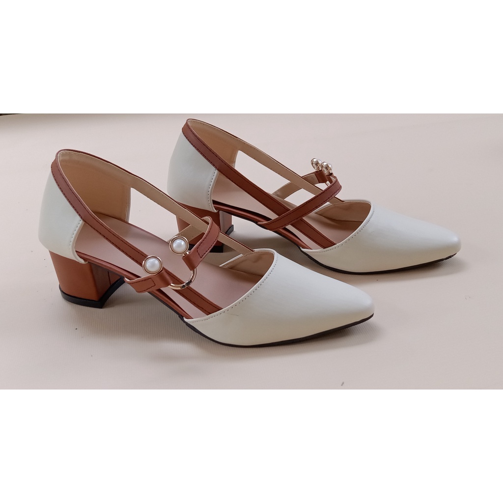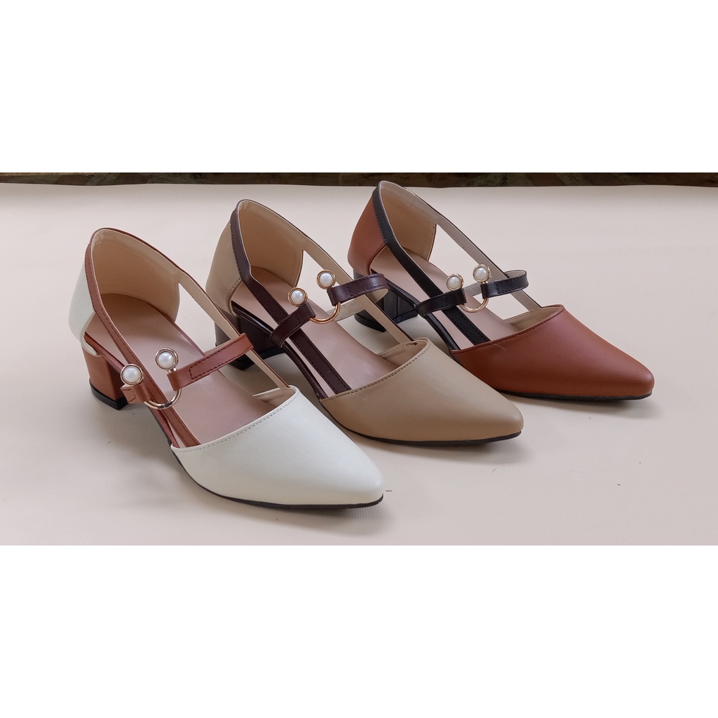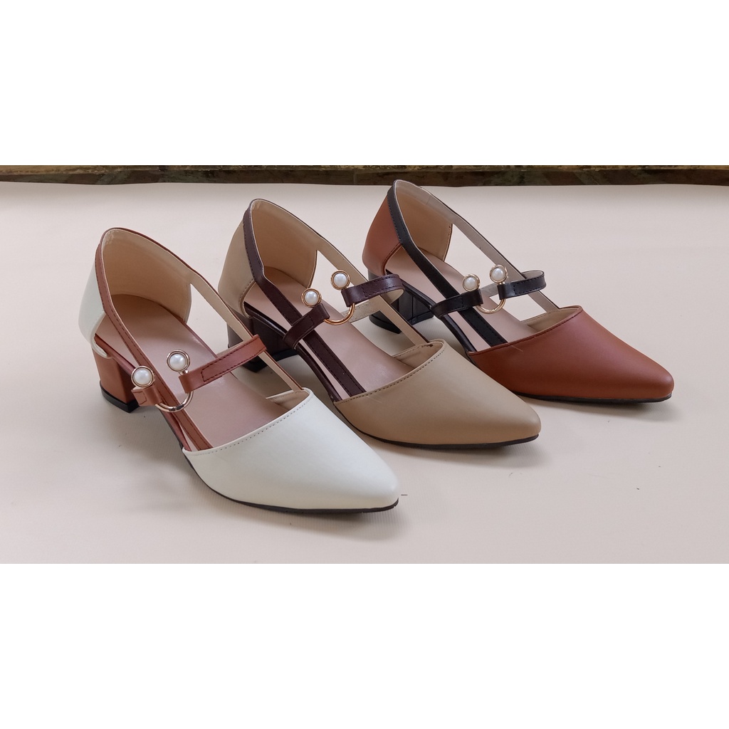 High Hells Sepatu Wanita Tali Ring Hak 5cm Kulit Sintetis