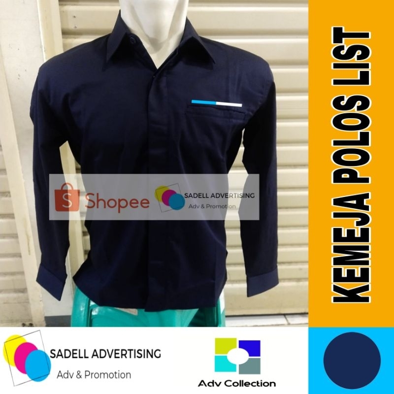 Kemeja Polos List Seragam Polos List Navy Lengan Pendek Pria Bordir