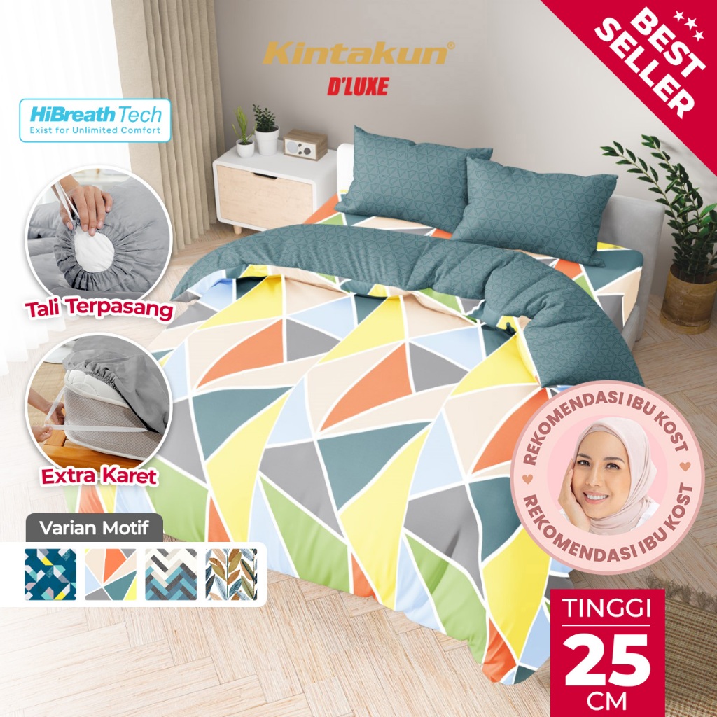 Kintakun Bed Cover Set Fitted 160 x 200 DLUXE Aesthetic Bunga Microtex Tinggi 25 cm B2