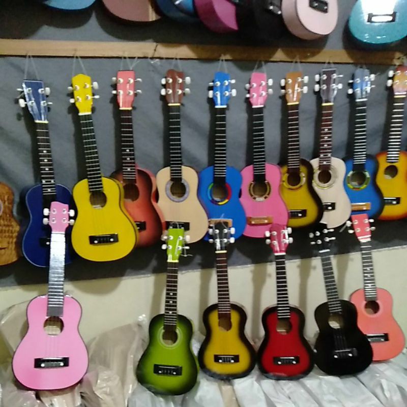 UKULELEsenar4/.karakter gambarkartun dan warna polos.Bonus paking kayu
