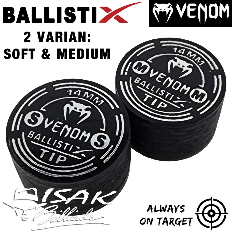 Venom BallistiX Black Clear Cue Tip - 14 mm Layer Billiard Stick Lapis