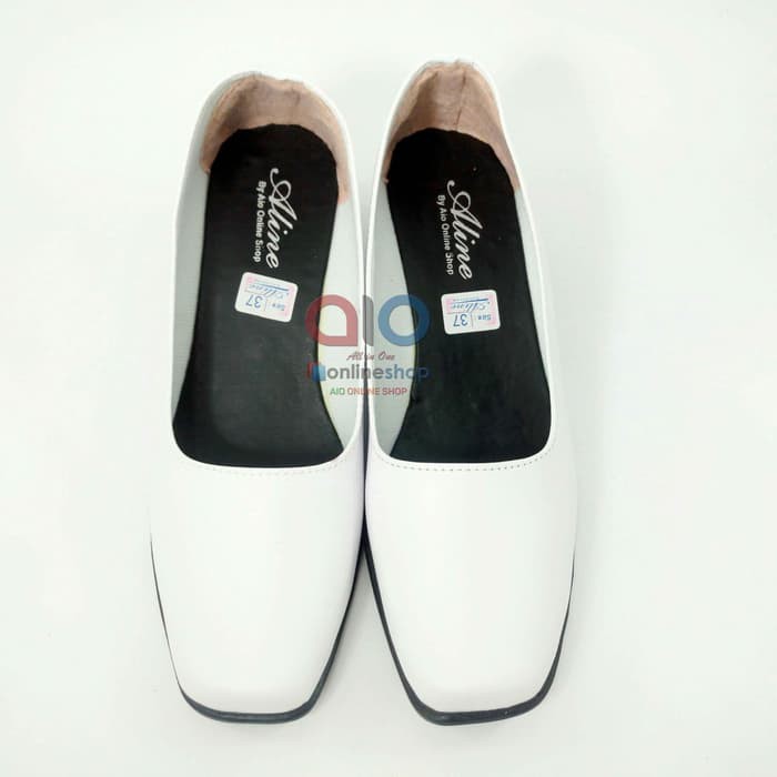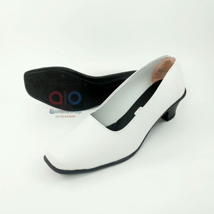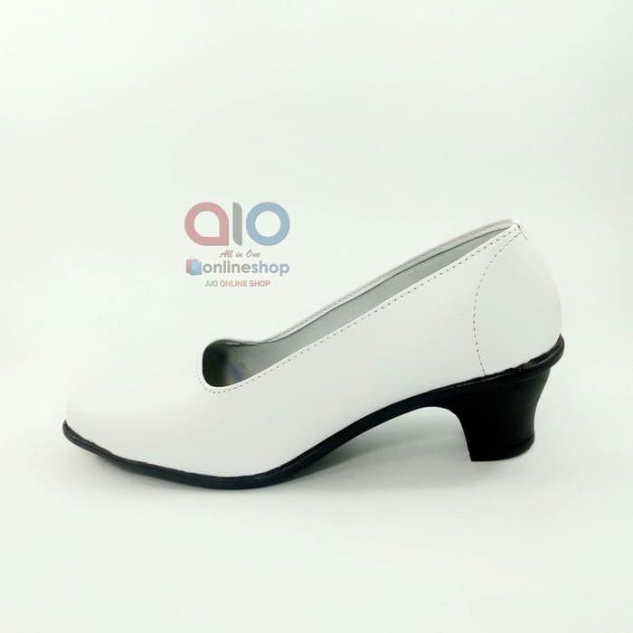 Sepatu Pantofel Wanita Hak 5 Cm Heels Putih Polos Formal Kerja Bidan Perawat Dokter AW16