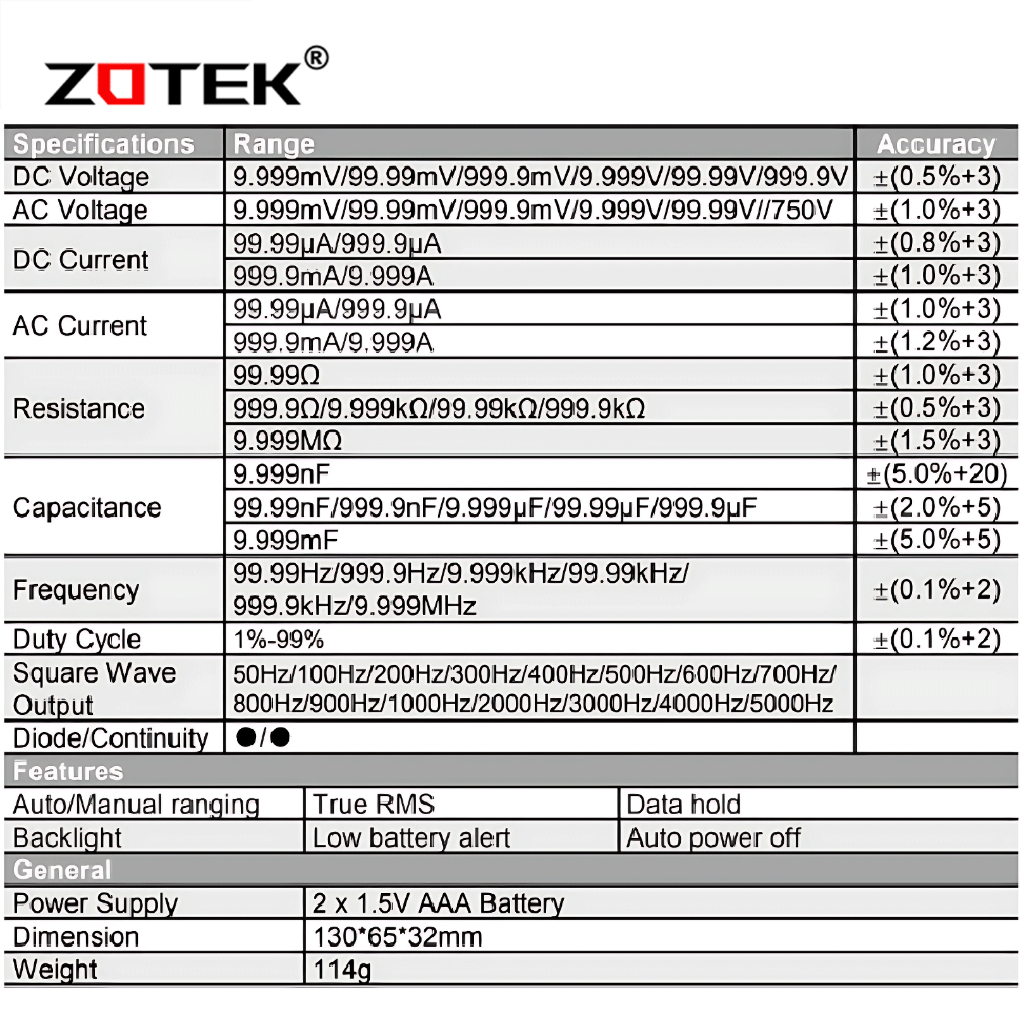 Zotek ZT109 Multitester Multimeter Digital 9999 count Auto | manual range