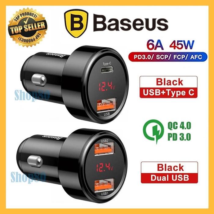 Baseus Adaptor Charger Mobil 6A 45W Usb + Type C Dual Fast Charging Adapter Batok Colokan Casan Cas Car Qc 3.0 - Usb Typ