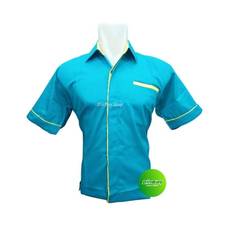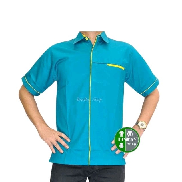 Kemeja Seragam Drill Tosca List Kuning Nyaman S-3XL