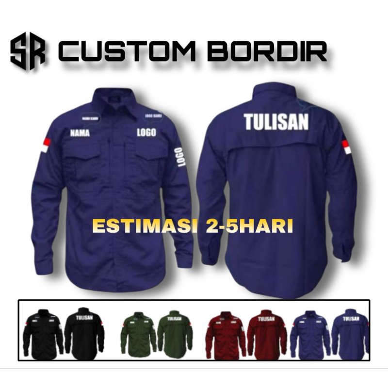 Custom Bordir Kameja Tactical M-TAC Lengan Panjang Seragam Lapangan Kerja Outdoor PDH PDL Custom