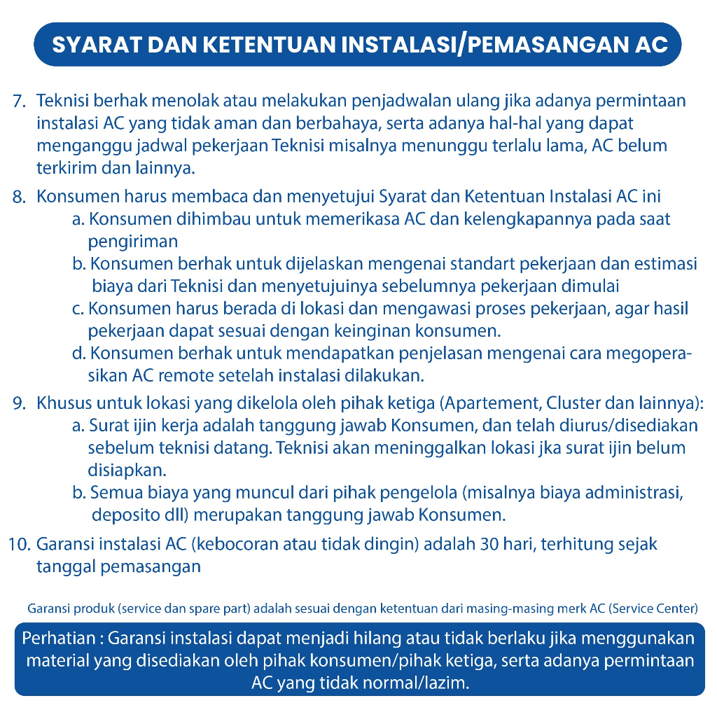 Instalasi AC only 0.5 - 1 Pk (TANPA MATERIAL)
