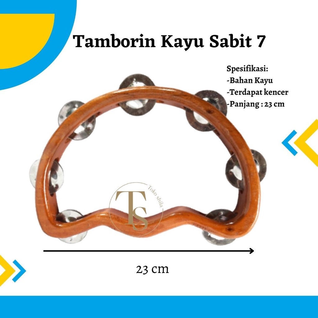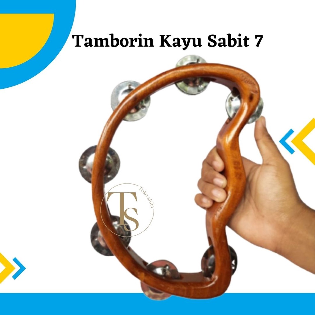 Tamborin Sabit 7 Kayu Mahoni Jepara Genggam Alat Musik Tsabit Kecrekan Tambourine Remaja