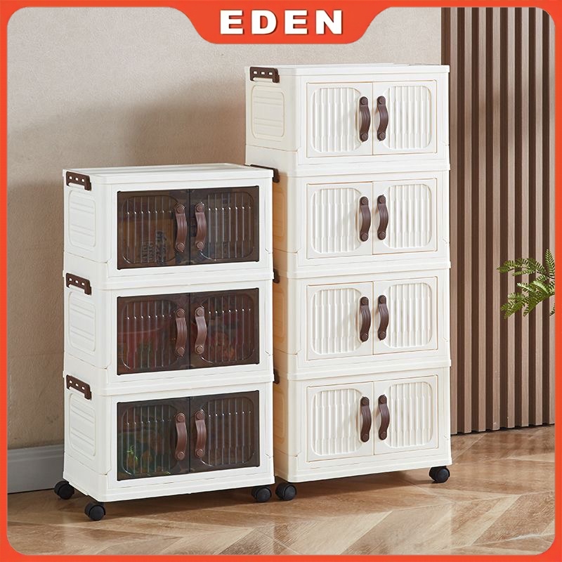 Eden - Lemari Plastik Lipat 3-6 Susun Dengan Roda | Rak Serbaguna Transparan Kapasitas Besar