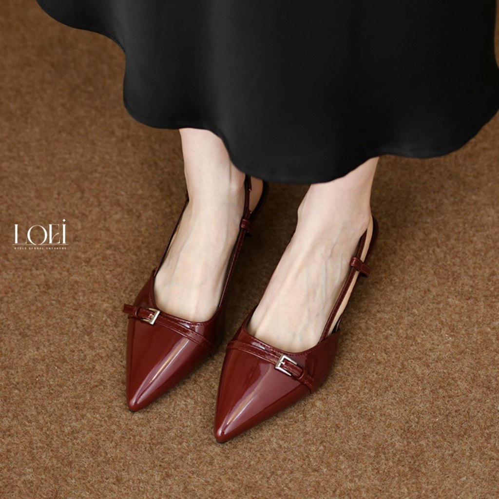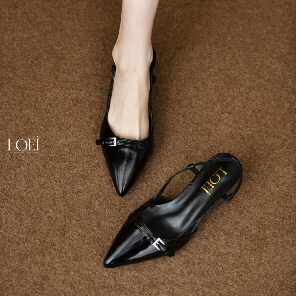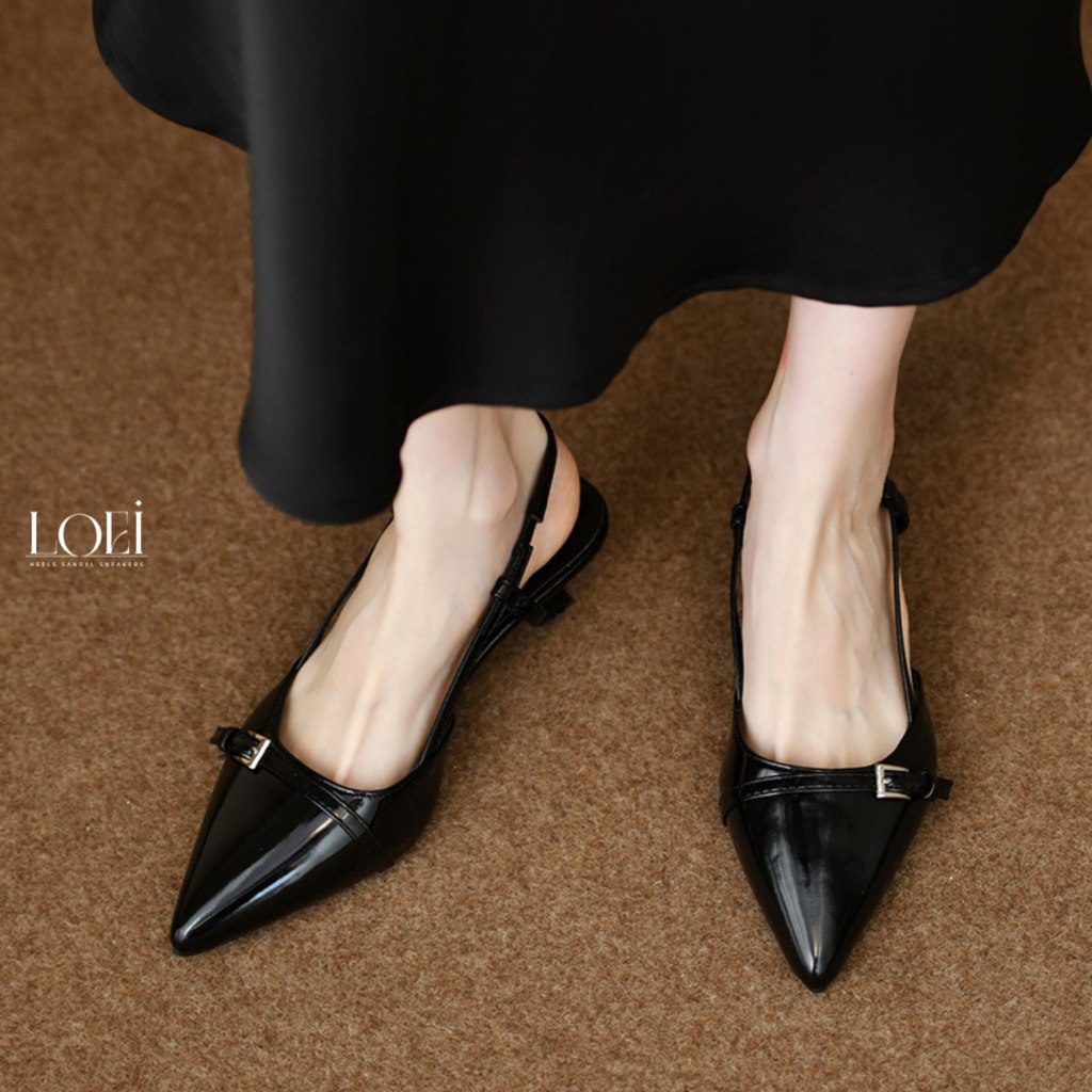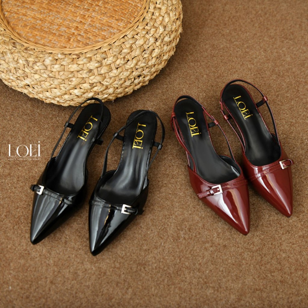 LOEI Shiny Sepatu Lancip Elegant Heels Slingback Pointy Terbaru Glossy Mewah A08