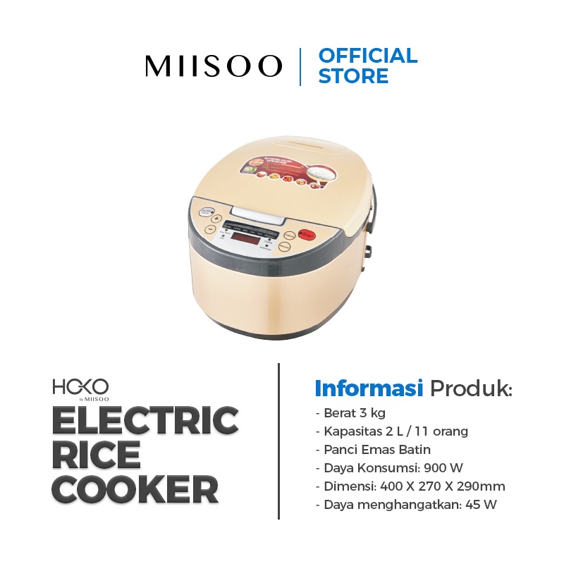 HOKO By MIISOO Electric Rice Cooker 2L Magic Com Smart cooker touch screen Penanak nasi Inner pot Eco Ceramic 900W-
