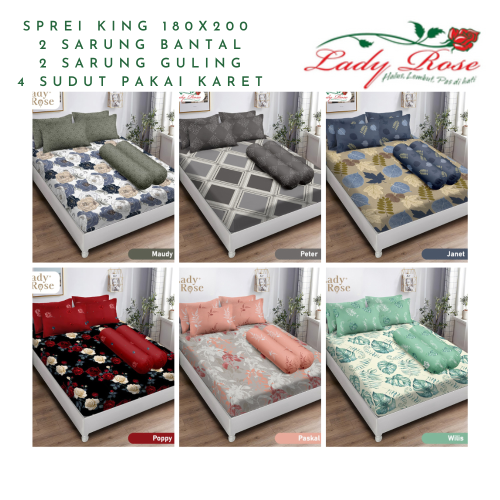 Sprei Lady Rose 180x200x30 ukuran King ( 6 kaki ) motif terbaru unik minimalis bunga cocok buat kado | hampers | bi