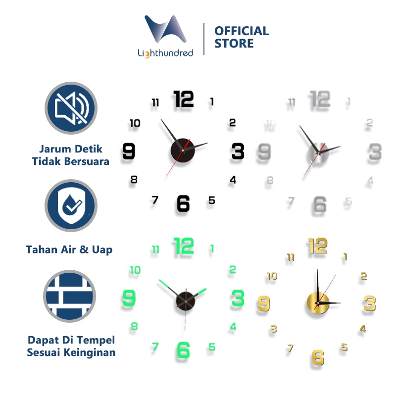 Lighthundred Stiker Jam Dinding Digital 3D Luminous Tanpa Bingkai DIY Untuk Dekorasi Rumah atau Kantor / Tempel Bes